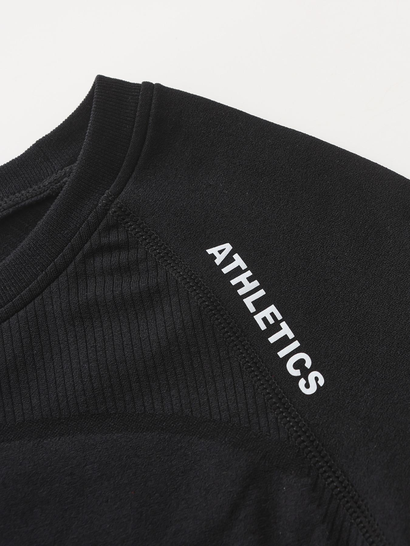 Women'S Letter Print Baselayer Top, Long Sleeve round Neck Compression Top for Yoga Gym Workout, Ladies Sportswear for Fall & Winter, Athletic Compression Shirt, Fitness Clothes Tops